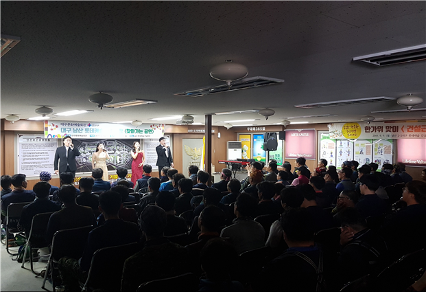건설근로자공제회 대구지사는 9일 대구시립예술단과 함께 대구 남산 2-2 재개발 건설현장을 찾아 한가위 맞이 '건설근로자 행복 콘서트'를 개최했다.