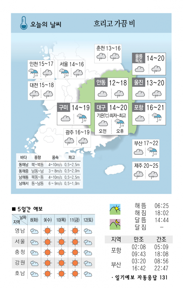 날씨-10월 7일(월) "흐리고 가끔 비"