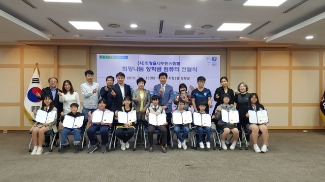 (사)희망을나누는사람들(회장 김정안)은 10일 지역 아동·청소년의 꿈과 희망을 지원하기 위해 초·중학교 학생 10명에게 장학금(600만원) 및 컴퓨터(100만원 상당)를 전달했다.