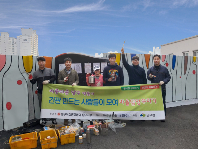 대구옥외광고협회 남구지부(지부장 김학민) 회원들은 16일 대구 남구 대명2동의 노후화된 담장들에 숲을 형상화한 벽화를 그리는 도시환경미화 봉사활동을 펼쳤다.