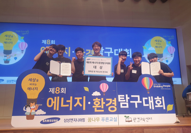 대회의 탐구 주제는 '세상을 바꾸는 에너지'. 송준식 교사가 지도하는 M.S.P.T는 '한 줄기의 빛, 위기의 지구를 구하다'를 주제로 발표해 대상뿐 아니라 최우수지도교사상(삼성엔지니어링상)까지 거머쥐었다.