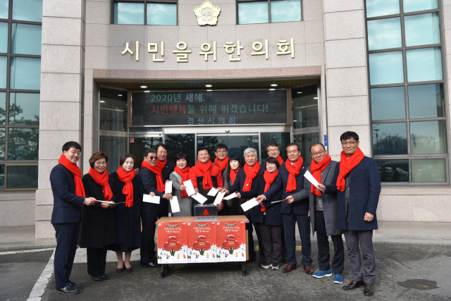 경북 경산시의회(의장 강수명)는 17일 '희망 2020 나눔 캠페인'에 동참해 어려운 이웃들과 온정을 나누고자 전체 의원이 모금한 성금 150만원을 경북사회복지공동모금회를 통해 전달했다.