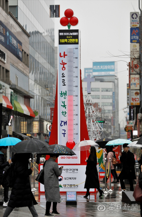 대구사회복지공동모금회는 "대구는 최근 2년 연속 전국에서 가장 먼저 사랑의 온도 100℃를 달성한 도시"라며 시민들의 기부 동참을 당부했다.