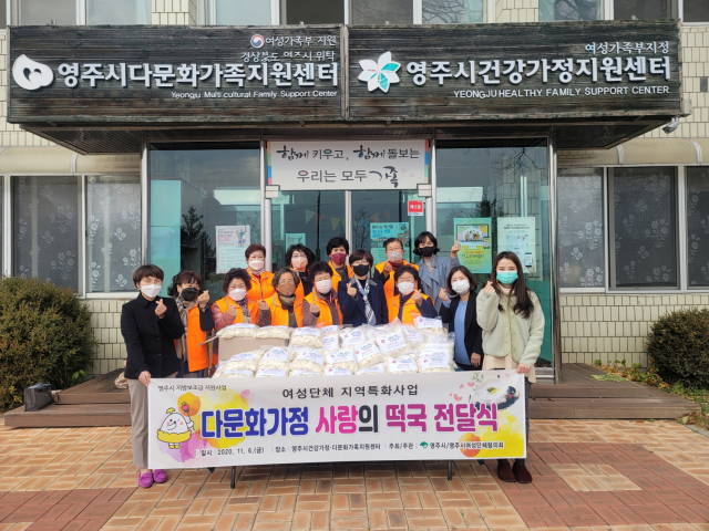 경북 영주시 여성단체협의회(회장 김세연)는 지난 6일 영주시 건강가정·다문화가족지원센터에 '사랑의 떡국'을 전달했다. 이 떡국은 다문화가정 50가구에 배부됐다.