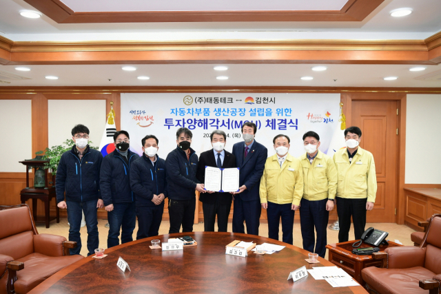 김천시(시장 김충섭)는 최근 ㈜태동테크(대표 정현우)와 공장 설립을 위한 투자양해각서(MOU)를 체결했다고 17일 밝혔다.