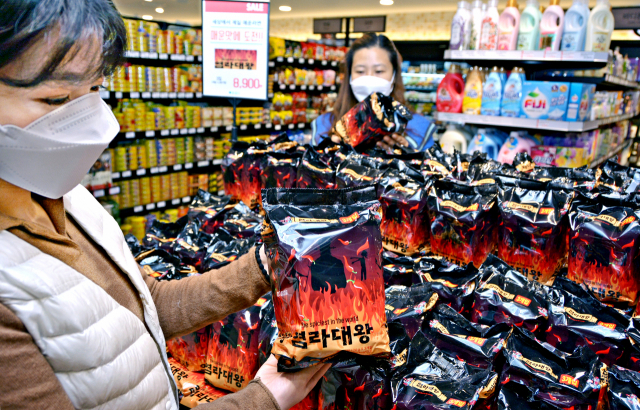 맵기로 유명해 많은 유튜버가 도전한 화제의 라면 '염라대왕'이 대구백화점 프라자점 지하 1층 식품관 가공식품 코너에 등장했다.