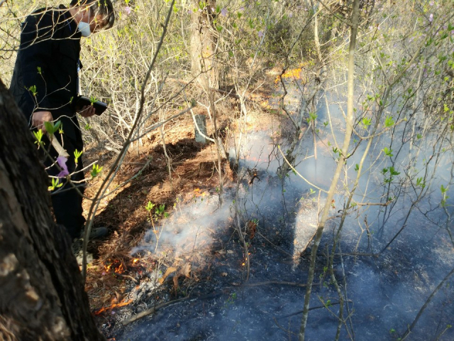 이날 산불진화에는 헬기 4대와 소방차 8대 진화차량 6대, 진화요원 145명이 투입됐다.