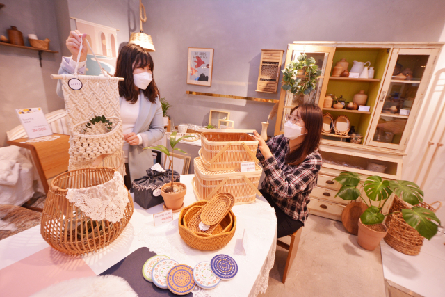 이 밖에 피크닉의 계절 봄을 맞아 대나무 바스켓 등 계절에 어울리는 인테리어 소품을 판매한다. 가격은 친환경 원목 마크라메 4만~6만원대, 대나무 피크닉 바구니 세트 8만원대.