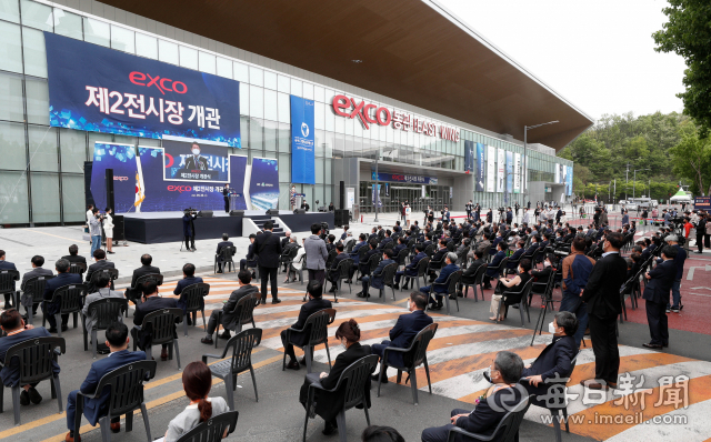 대구 엑스코 제2전시장(동관)이 28일 문을 열고 운영을 시작한 가운데 동관 앞 도로에서 개관식이 진행되고 있다. 엑스코는 제2전시장 개관으로 3만 ㎡의 전시장 면적을 확보해 '2022 세계가스총회' 등 국제 대형 행사 유치에 필요한 요건을 갖추게 됐다. 우태욱 기자 woo@imaeil.com