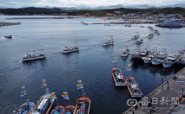 30일 오전 울진군 수산업 종사자들이 죽변항 앞바다에서 어선 30척을 동원해 일본 후쿠시마 원전 오염수 해양방출 결정을 규탄하는 해상 시위를 벌이고 있다. 이들은 규탄 성명을 통해 일본 정부에는 일방적 해양 방출 결정 즉각 철회와 투명한 정보 공개, 과학적 검증 수용을, 한국 정부에는 수산물 안전관리방안과 수산업 보호대책 마련을 촉구했다. 우태욱 기자 woo@imaeil.com