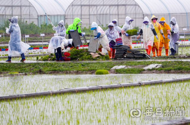 망종을 이틀 앞둔 3일 오후 대구 북구 학정동에서 농민들이 논물 가득한 들판에 모를 심고 있다. 24절기 중 9번째인 망종은 벼 같이 수염 있는 곡식의 씨앗을 뿌리기 좋은 때를 뜻한다. 우태욱 기자 woo@imaeil.com