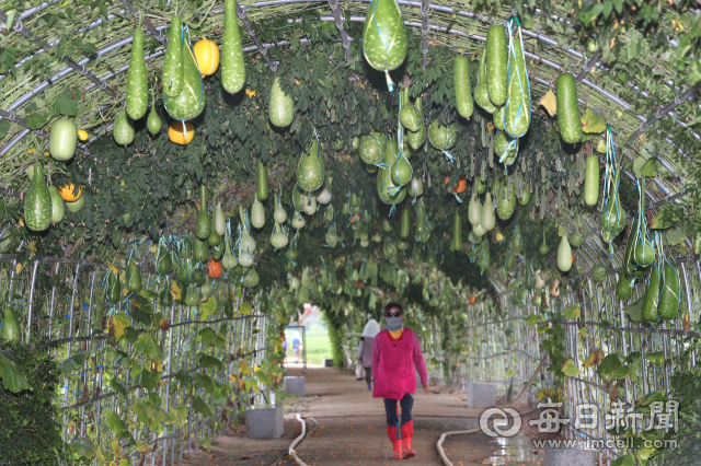 9일 대구 북구 금호강 하중도 박터널에 수세미와 호롱박 등 다양한 모양의 박이 주렁주렁 매달려 볼거리를 제공하고 있다. 성일권 기자 sungig@imaeil.com