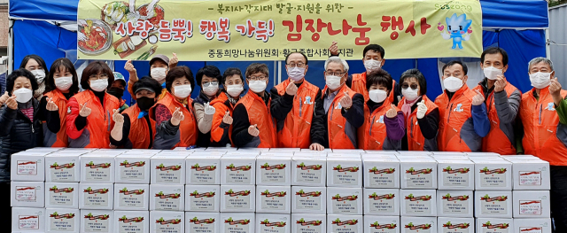 대구 수성구 중동 희망나눔위원회(위원장 정인출)는 지난 10일 희망나눔 위원들과 협력단체 봉사자 20여 명이 참여해 '사랑 듬뿍! 행복 가득! 김장 나눔' 행사를 진행했다.