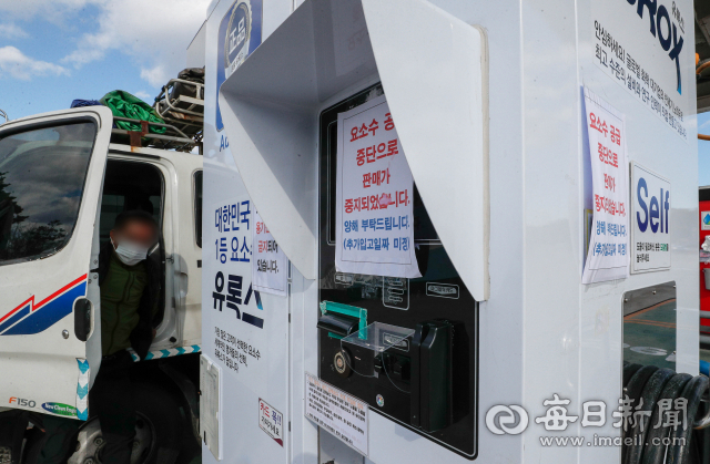 11일 광주대구고속도로 논공휴게소 주유소에 요소수 판매 중지 안내문이 붙어 있다. 주유소 관계자는 일주일에 하루 요소수 1천 리터를 납품 받지만 당일 반나절이면 판매가 완료되는 상황이라고 했다. 우태욱 기자 woo@imaeil.com
