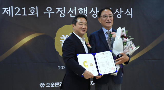 올해로 21회를 맞은 우정선행상은 매년 사회의 선행과 미담사례를 발굴해 널리 알리고 격려하고자 이동찬 코오롱그룹 선대회장의 호인 '우정(牛汀)'을 따서 2001년 제정한 상으로, 대상 5,000만 원을 비롯, 총 상금 1억 5,000만 원 규모로 진행됐다.