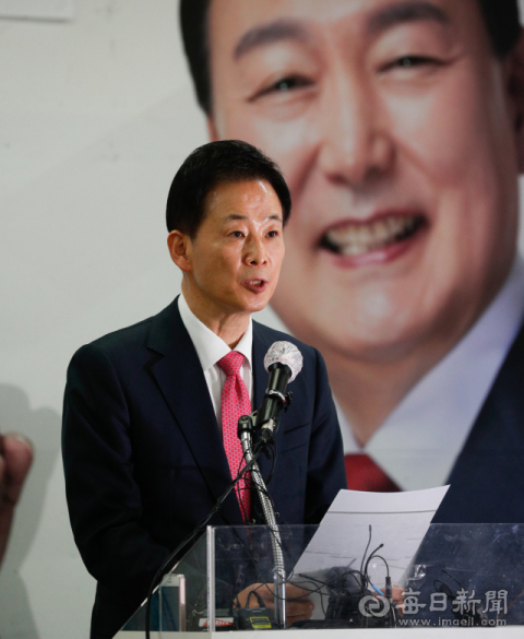 박근혜 전 대통령 측근인 유영하 변호사가 1일 국민의힘 대구시당에서 대구시장 출마 선언을 하고 있다. 우태욱 기자 woo@imaeil.com