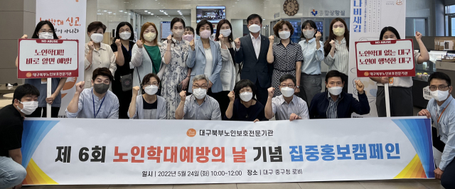 대구북부노인보호전문기관(관장 김현석)에서는 지난 24일 대구 중구청 1층 로비에 노인학대의 심각성을 알리는 사진을 전시하고, 노인학대 신고전화번호가 기재된 리플렛과 홍보물품을 배부하며 노인학대예방의 날 집중 홍보 캠페인을 개최했다. 또 관내 노인복지시설 운영자를 대상으로 노인학대예방 교육을 실시했다.