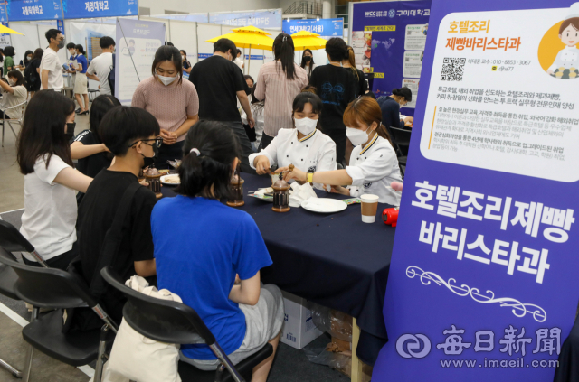 22일 대구 엑스코에서 대구시교육청 주최로 열린 대구진학진로박람회에서 학생들이 전공 체험을 하고 있다. 대학별 상담관과 멘토멘티관, 수시상담관, 학교생활 디자인관 등으로 구성된 이번 박람회에서는 전국 60여개 대학 관계자와 진학 전문가들이 23일까지 중고등학생과 졸업생, 학부모에게 최신 대입정보를 제공하고 진학 상담을 한다. 우태욱 기자 woo@imaeil.com