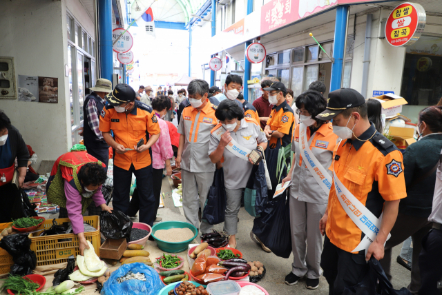 경북 봉화소방서(서장 윤영돈)는 7일 봉화읍 상설시장에서 남·여 의용소방대원 등 50여 명이 참석한 가운데 전통시장 장보기 행사와 화재 예방 캠페인을 진행했다.