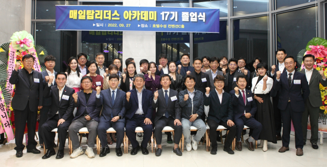 매일탑리더스 아카데미 17기 동기회(회장 진경훈) 졸업식이 27일 오후 수성구 호텔수성 컨벤션C홀에서 열렸다. 이날 행사에는 17기 원우를 비롯해 총동창회 임원, 16·18기 회장단 등 40여 명이 참석해 석별의 정을 나눴다.