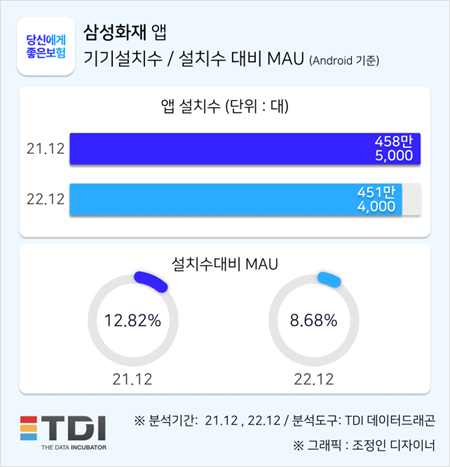 TDI(티디아이)의 분석 플랫폼 데이터드래곤을 통해 삼성화재 설치기기수와 설치수 대비 MAU를 분석해봤다.