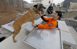 튀르키예 지진 긴급구호대 1진 임무를 마치고 복귀한 김원현 핸들러와 구조견 토리가 22일 대구 달성군 중앙119구조본부 건물붕괴 훈련장에서 인명구조를 수색훈련을 하고 있다. 김영진 기자 kyjmaeil@imaeil.com