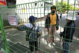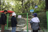 10일 오후 대구 수성구 범어동 범어공원 내 현충 시설인 '나야 대령비' 진·출입구에서 주민들이 통행 방해 울타리 철거를 촉구하며 이야기를 나누고 있다.