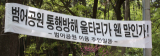 10일 오후 대구 수성구 범어동 범어공원 내 현충 시설인 '나야 대령비' 진·출입구에 내걸린 통행 방해 울타리 철거 촉구 현수막. 정운철 기자 woon@imaeil.com