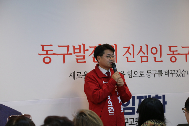이날 선거사무소 개소식에는 ▷박창달 전 국회의원 ▷이윤원·장상수 전 대구시의회의장 ▷정흥표·허진구 전 동구의회의장 ▷이병종 아양초 총동창회장 ▷석창민 청구중·고총동창회장을 비롯해 700여명의 지역 주민들이 사무소 개소를 축하했다.