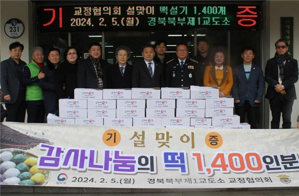 경북북부제1교도소는 지난 5일 경북북부제1교도소 교정협의회(회장 정문교, 부회장 최성윤, 사무국장 송희권 등 11명)로부터 떡 1400인분을 기증받아 전 수용자에게 지급했다.