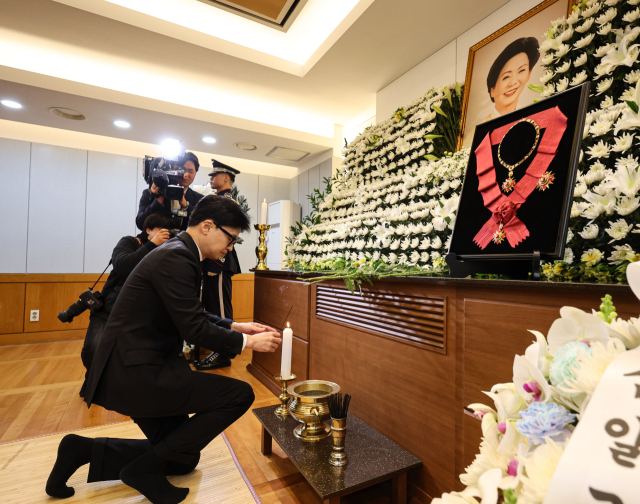 한 위원장은 "국민 모두가 고인과 인연을 가지고 있다"며 "민주주의 큰 산이셨던 김 전 대통령과 백년해로하시면서 영원한 동반자로 내조하시고 싸울 땐 같이 싸우신 대단하신 분"이라고 말했다.
