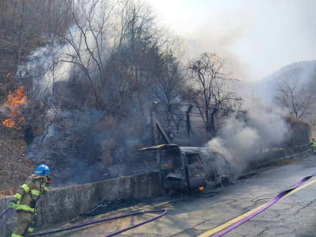 소방당국 등은 차량 화재를 진화하는 한편, 산불 저지선을 만드는 등 산불 확산을 막는데 총력을 기울였다.