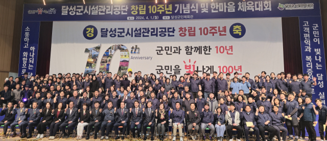 대구 달성군시설관리공단은 최근 창립 10주년을 맞아 달성군 현풍읍 달성군민체육관에서 '창립 10주년 기념행사'를 열었다고 3일 밝혔다.