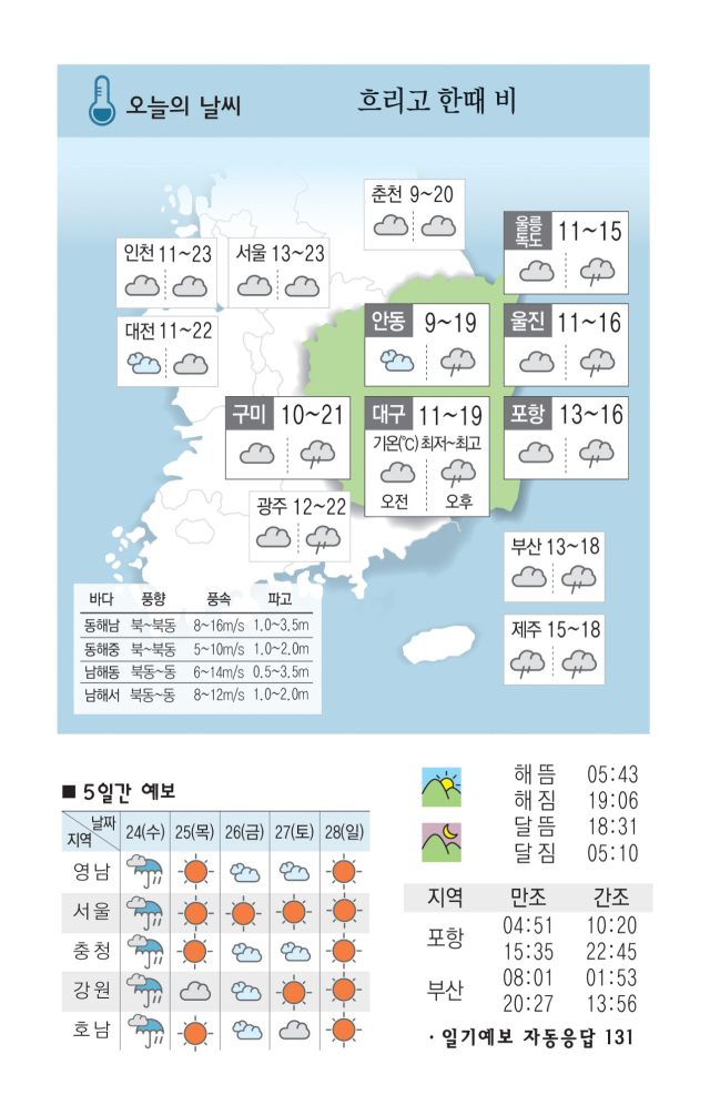 [날씨] 4월 23일(화) "흐리고 한때 비"