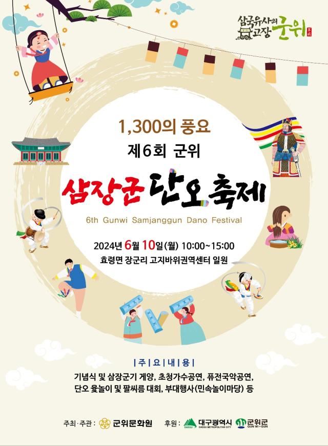 1천300여 년을 이어 온 대구 군위군의 전통 문화이자 대동놀이 의례인 '군위 삼장군 단오축제'가 10일 효령면 고지바위권역 다목적센터 일원에서 펼쳐진다.