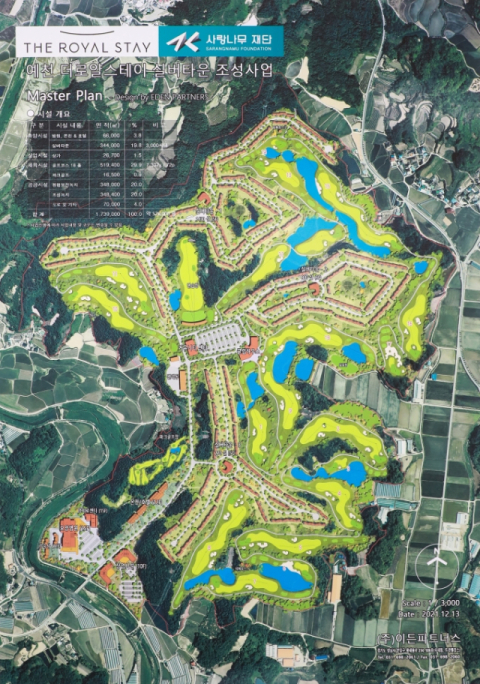 더 로열 스테이는 총사업비 7천억원을 투입해 감천면 현내리 일원에 요양병원, 호텔, 18홀 골프장, 파크골프장 등을 갖춘 3천세대 규모 실버타운을 조성하는 사업이다.