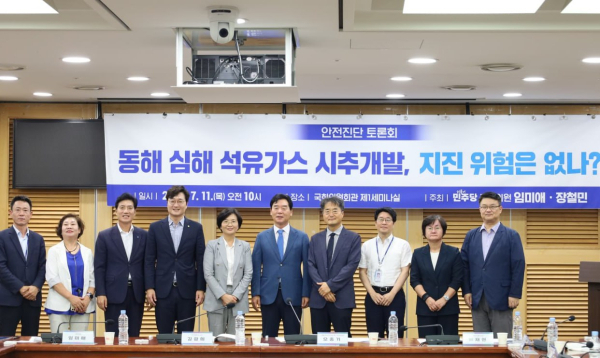 임미애 더불어민주당 의원 주최로 11일 국회에서 동해 심해 석유 가스 시추 개발 관련 지진 위험성 안전진단 토론회가 열렸다. 국회 관계자 및 지질학 전문가‧포항시 관계자 등이 참석해 지진 우려 해소를 위한 사전 지질 조사, 시추 전반 모니터링 감시 등 지진 예방 대책을 요구했다.