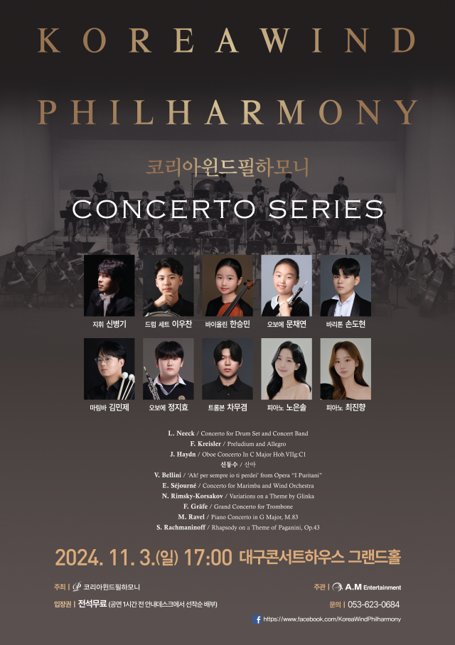 코리아윈드필하모니 콘체르토 시리즈가 11월 3일(일) 오후 5시 대구콘서트하우스 그랜드홀에서 열린다.