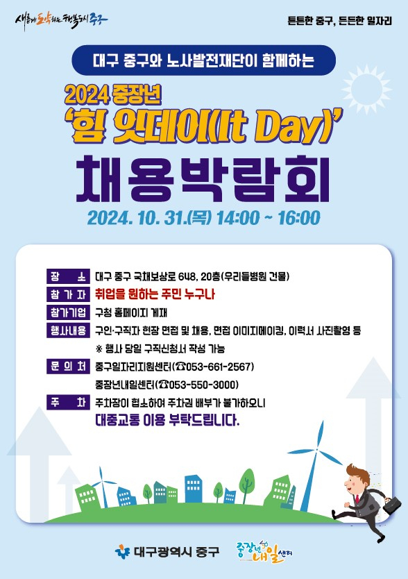 자세한 사항은 대구광역시 중구청 누리집(www.jung.daegu.kr)을 참고하거나 중구일자리지원센터(☎661-2567), 대구중장년내일센터(☎550-3000)로 문의하면 된다.