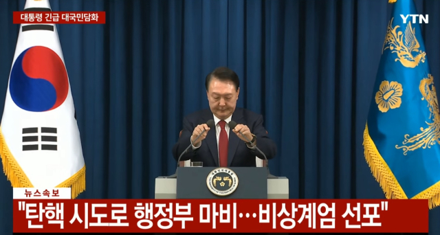 윤석열 대통령은 3일 비상계엄을 선포했다. 윤석열 대통령은 이날 오후 10시 20분을 넘겨 용산 대통령실에서 이같은 내용의 긴급 담화를 발표했다.