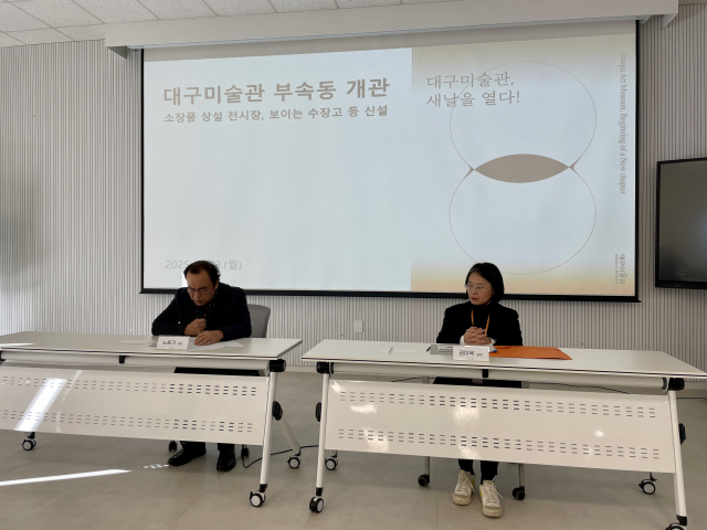 대구미술관이 부속동 개관을 하루 앞둔 13일, 내부 시설을 공개하며 제2의 도약을 알렸다. 대구미술관은 이날 기자간담회를 열고 운영 방향 소개, 시설 및 전시 투어 등을 진행했다.