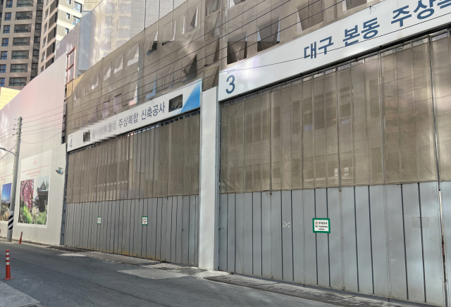 9일 오전 대구 달서구 본동 주상복합아파트 건설공사 현장은 문이 닫힌 채 사람의 흔적을 찾아볼 수 없었다. 대형 건설사가 시공한 이 단지는 최근 지역의 미분양 문제가 심각해지자 공사가 중단됐다.