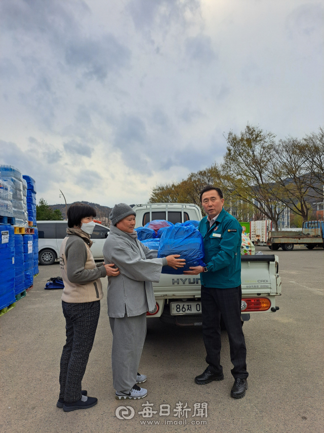 경북 경주 문무대왕면의 천월사(주지 정암)와 신도회, 경주3040희망사다리클럽 회원들은 경북 북동부 산불 피해를 입은 이재민을 돕기 위해 의류 모으기 운동을 펼쳐 모은 옷 1.5톤(t) 가량을 6일 영덕군의회(의장 김성호)를 통해 이재민들에게 전달했다.