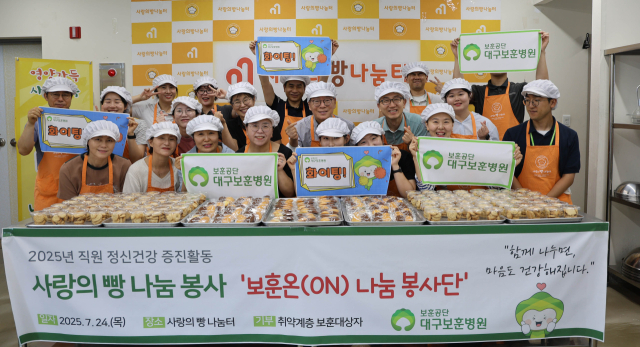 대구보훈병원(병원장 이상흔)은 지난 24일, 병원장을 포함한 경영진과 직원으로 구성된 자율봉사팀(보훈 ON) 30여명은 직접 마들렌과 쿠키를 만들어 총 80명의 취약계층 보훈대상자에게 전달하는 '사랑의 빵 나눔 봉사' 을 벌였다.