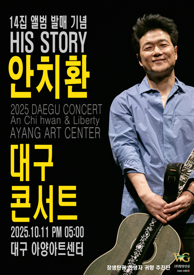 1980년대 포크 음악에 시적 서정성과 강렬한 시대의식을 담아내며 '우리 시대의 가객(歌客)'으로 불려온 가수 안치환이 오는 11일(토) 오후 5시 아양아트센터에서 대구 관객들을 만난다. 이번 무대는 14집 새 앨범 '인간계' 반매를 기념한 전국 투어 'HIS STORY 안치환 콘서트'의 일환으로 열린다.