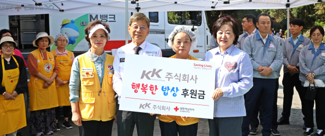 KK주식회사(대표이사 박윤경)는 대한적십자사 대구지사(회장 배인호)와 함께 지난 1일, 두류공원에서 취약계층 어르신 1,000여 명을 대상으로 '행복한 밥상(무료급식)'봉사활동을 펼쳤다고 밝혔다.