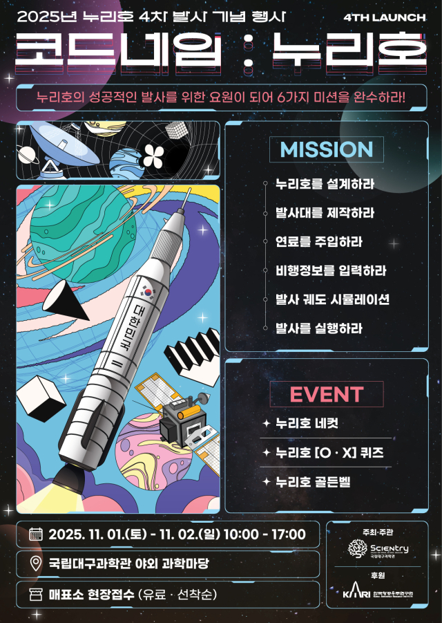 국립대구과학관은 내달 1, 2일 양일 간 온 가족이 함께 참여하는 놀이형 과학문화 체험 프로그램인 '2025년 누리호 4차 발사 기념 행사'를 개최한다.