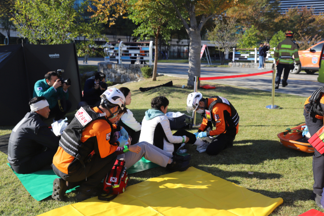 이번 훈련은 DGIST 뒷산에서 실화에 의한 산불이 발생해 강한 바람을 타고 인근 건물로 번지는 상황에서 다수 사상자가 발생하는 등 복합재난상황을 가정해 열렸다.