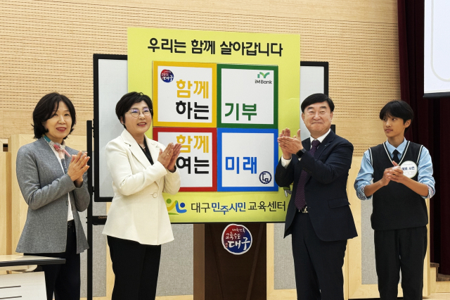 대구시교육청은 29일 대구민주시민교육센터(이하 센터)에서 iM뱅크(은행장 황병우)와 함께 학생들이 민주시민 체험활동을 하며 발생한 기부금 전달식을 개최한다고 밝혔다.