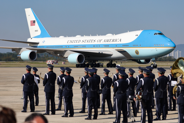'이것'은 미국 대통령이 탑승한 미 공군 항공기를 부르는 콜사인이지만 통상 보잉 747-200B를 개조한 VC-25A를 의미한다. 핵 공격 상황에서도 지휘가 가능한 통신망을 갖췄으며 한 번 급유로 1만2천600㎞를 날 수 있는 '이것'은?(10월 30일 4면)